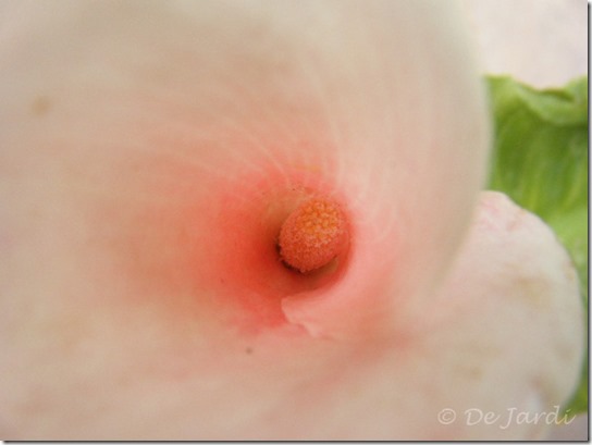 En l’escrit de febrer on parlava de la cal·la “Green Goddess” vaig fer una crida per veure si algú tenia l’altra varietat de Zantedeschia aethiopica de color rosat que completa la trilogia de colors, de moment. No va haver sort, però en canvi gràcies a les indicacions de Maria Dolores sí que em vaig poder fer amb ella a l’ebay. El rizoma va aplegar prompte i en bones condicions, amb l’inconvenient que en passar del fred del nord d’Europa a l’inici de la primavera en el sud segurament va pensar que venia el bon temps i va començar a brotar.