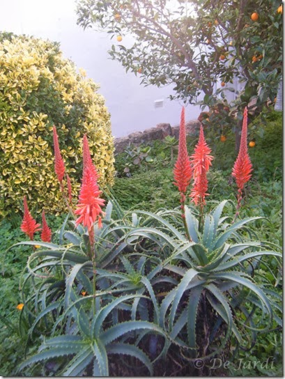 Les flors fan aparició ara unides en una espiga. Després aniran separant-se i doblant-se cap a baix. En la seua pàtria natal, Sud-àfrica, són pardals i insectes especialitzats els que prenen el nèctar de les flors tubulars. Ací com els pardals solen tindre el pic més curt el que fan és trencar-les pel costat, com passava amb l’espasa de foc i les busqueretes.